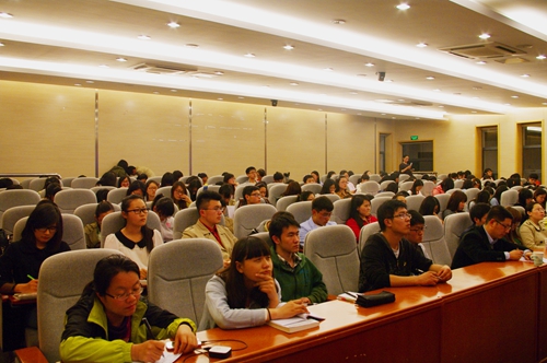 讲座伊始,谢院长首先向同学们介绍了孙文恺博士的研究方向与成果,以及此次讲座的大致流程。随后,孙文恺教授从美国法哲学理论的哲学基础、美国当代法哲学的主要流派、对美国法律哲学理论研究的反思等三个方面向同学们介绍了英美很多法学思想大家的为学经历及理论贡献,并结合自己在美国的游学趣事,为同学们生动地诠释了美国法哲学的理念。孙教授的讲述风趣幽默又不失严谨,让同学们深有感触,受益匪浅。
