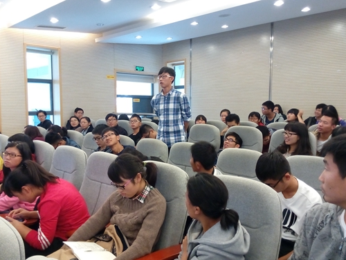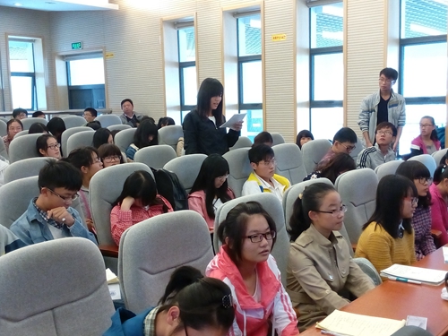 接着,刘教授就我国平等权的理论争论问题向在座的师生讲述了六点。他认为,一、平等权既是一项法律原则同时也是一种法律权利。二、它往往是基于在对其他权利的保护过程中形成的相关体制、机制、制度而产生的。三、平等不等于平均,我们在法学研究上,将平等主要认定为机会平等和法律主体资格的平等。要理解平等是一种法律意义上的平等,是一种形式上的平等。四、平等权要经历一个由宪法权利向现实权利的艰巨的转化过程。落实宪法中的权利,通过各种各样的法律规则将其具体化,然后在具体的实践过程当中,它还需要经历一个非常艰巨的转化。五、权利主体平等与权利类型平等问题。六、权利位阶问题。关于权利位阶,刘教授认为这是个伪命题。接下来环节为学生提问,同学们就平等权问题向刘教授频频发问,刘教授一一作了耐心细致的回答。