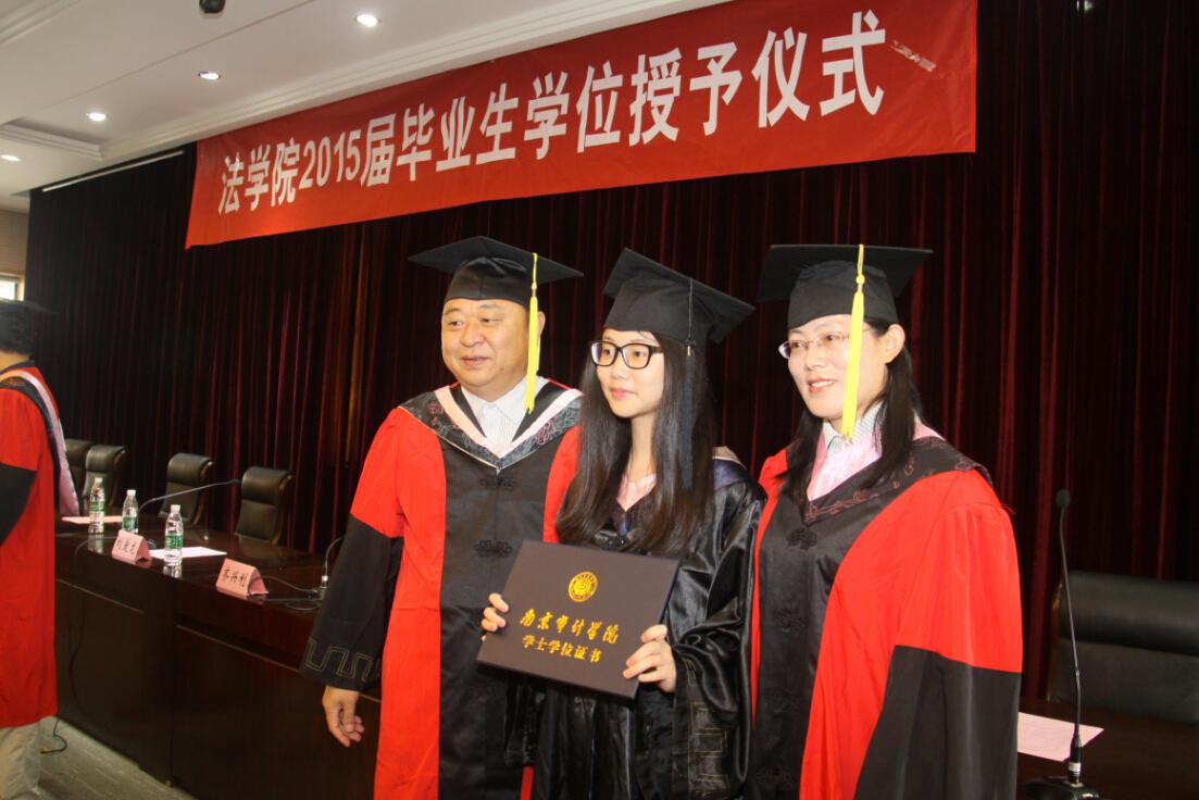 随后,无码直播 党总支书记齐兴利教授宣读了关于授予2015届毕业生法学学位,法务会计和法务金融方向学生辅修学位的决定,在场毕业生欢欣鼓舞。在学位授予仪式的最后,优秀毕业生代表郑康、褚泽言及周玫君代表毕业生回忆了过去在无码直播 的动人时光,从初入大学的懵懂青涩,到学习生活的摸爬滚打,再到如今的成熟冷静,让在场的毕业生们感同身受。
