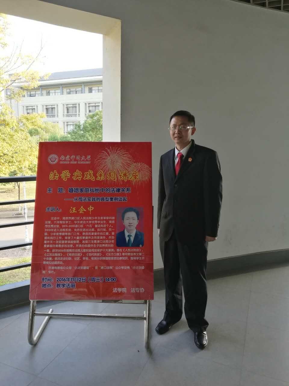 11月2号下午两点,浦口区人民法院少年及家事审判庭的汪会中法官来到南审,在模拟法庭为无码直播 师生送来了一场精彩的法学讲座。本次讲座题目为 “婚姻家庭纠纷中的法律关系——从司法实践的典型案例谈起”,同学们非常积极地参与其中,跟随汪法官走近婚姻家庭法。