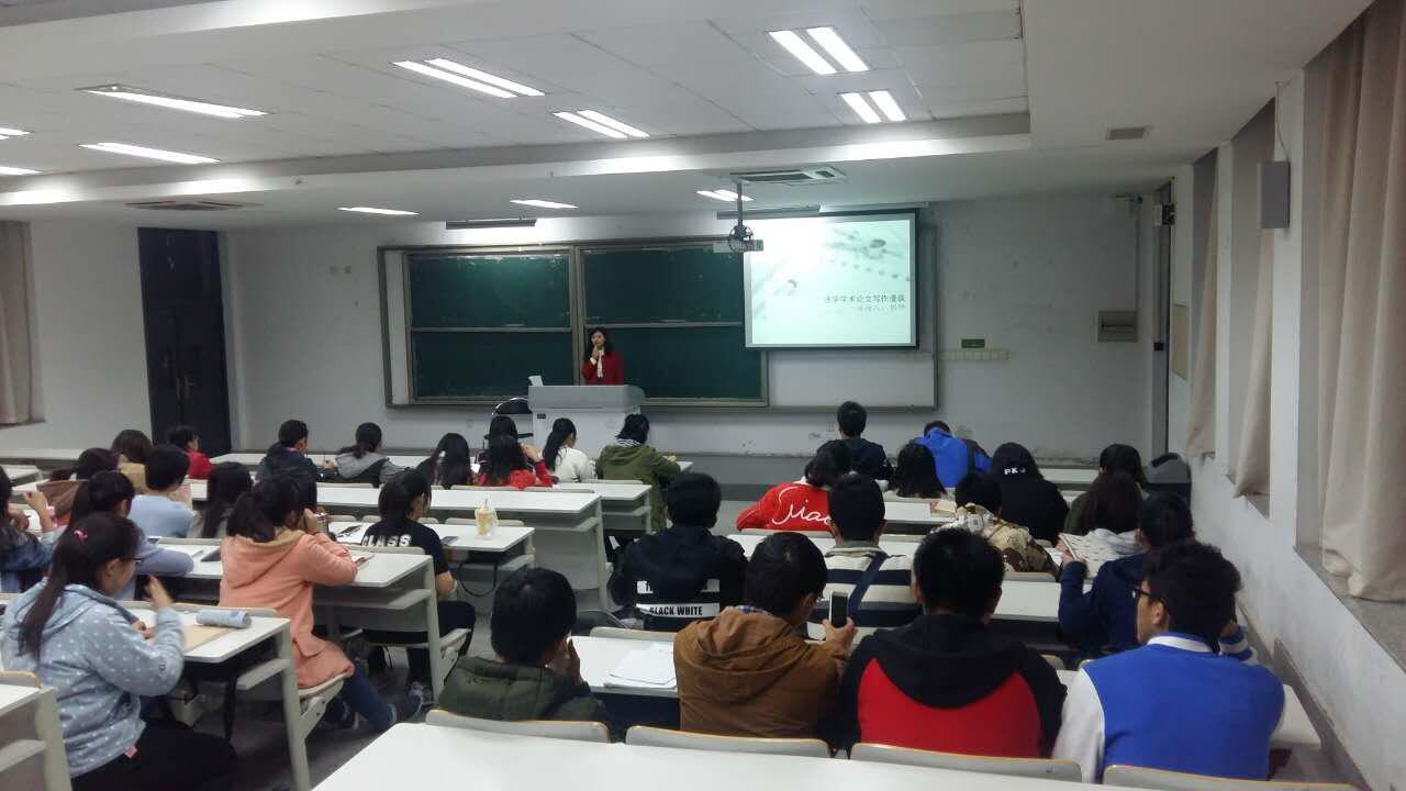 11月16日晚,竞慧西楼313室,无码直播 新生导师郭研为16级法会一班同学做题为“法学学术论文写作方法”的学术讲座。