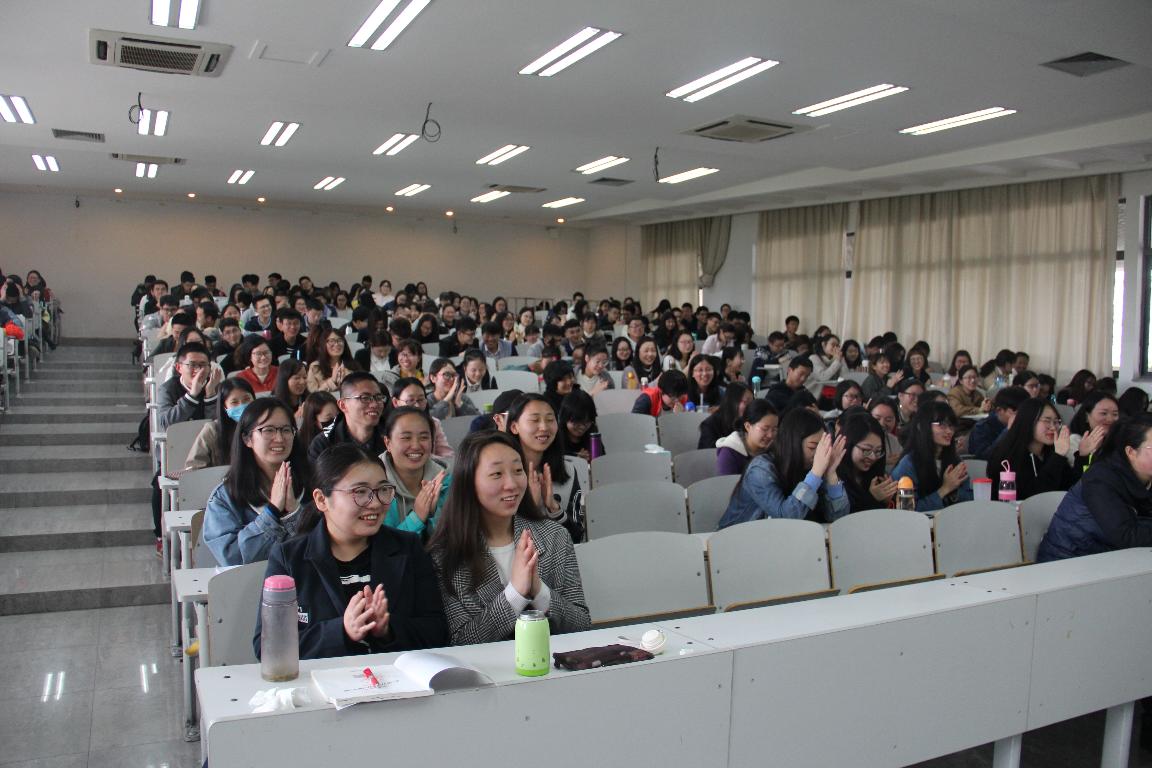 随后,秦康美老师分享了自己对于就业的观点:考研,只要坚持,就会有收获;无论学硕还是专硕,复习规律都是一样的。秦老师告诉学生们,首先要重视每一个就业机会,即使备战考研的学生也不能孤注一掷;对于国考、省考、事业单位招聘,要做到逢考必考,尤其不能忽视金融方向。其次,相较于银行三月的春招,应该格外注意十月份的校园招聘,因为其提供的职位更多,层次更高。秦老师建议学生给自己的未来设置一个大目标,但不建议设置如职业、地域等具体的目标,因为过分的具体会使人丧失很多机会。南审的学生不能随大流,除了银行外,证券、保险、租赁公司、小贷公司也是很好的选择。