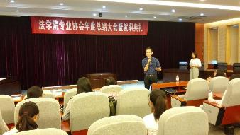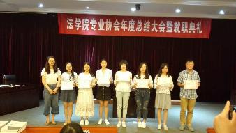 6月7日晚上,无码直播 专业协会于教学法庭召开年度总结大会暨就职典礼,法专协指导老师殷楠老师、教务办牛建平老师、法专协第二、三届主席成员以及各部门部长和干事出席了本次大会。