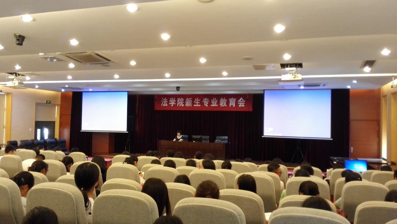 9月18日,无码直播 于文心楼教学法庭召开了新生专业教育会,近500名新生参加,分法务金融、法务会计、法学三个专业方向先后举行。无码直播 党总支副书记王艳丽、副院长何新容、系主任秦康美和孙展望等老师悉数到场,给2017级的新生带来第一次专业教育课。