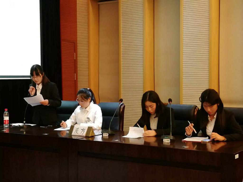本次决赛分热点解析、知识竞答和现场辩论三个环节进行。在第一个热点解析环节,进入决赛的8名同学分别就“习近平新时代中国特色社会主义思想”、“网络治理”、“宪法宣誓制度”、“支付宝转账”、“二孩政策”、“海外代购”、“环境治理”等热点问题,从法学专业视角进行了演讲,充分表达了自己的观点。知识竞答环节,参赛选手们对覆盖专业知识、时势热点及百科知识问题进行抢答,在场学生也热情参与互动。辩论环节,就“舆论对于司法的作用”这一主题,参赛选手分为正反两方展开激烈的辩论,选手们唇枪舌剑、据理力争,展现了法科学生优秀的辩论才能。
