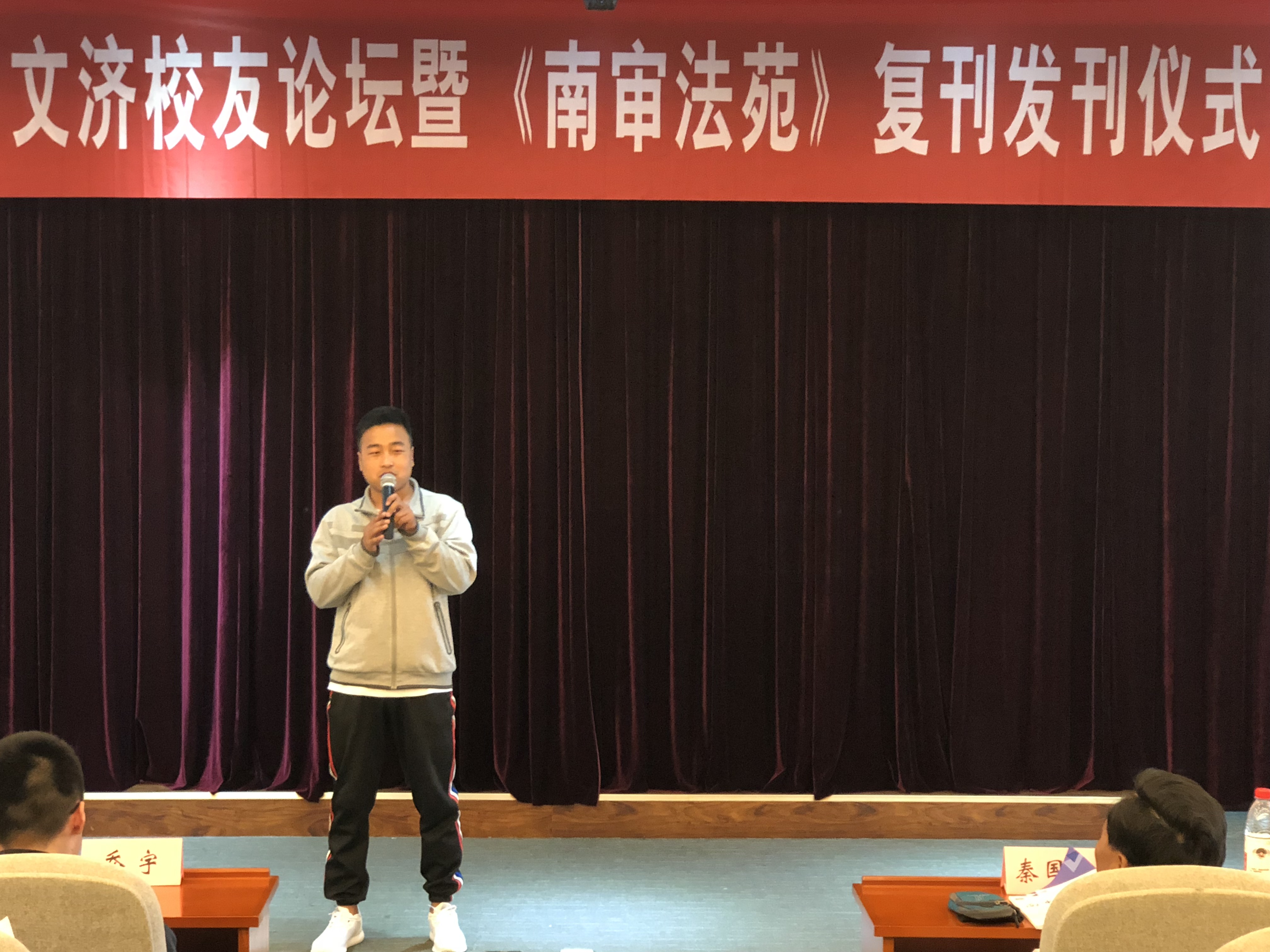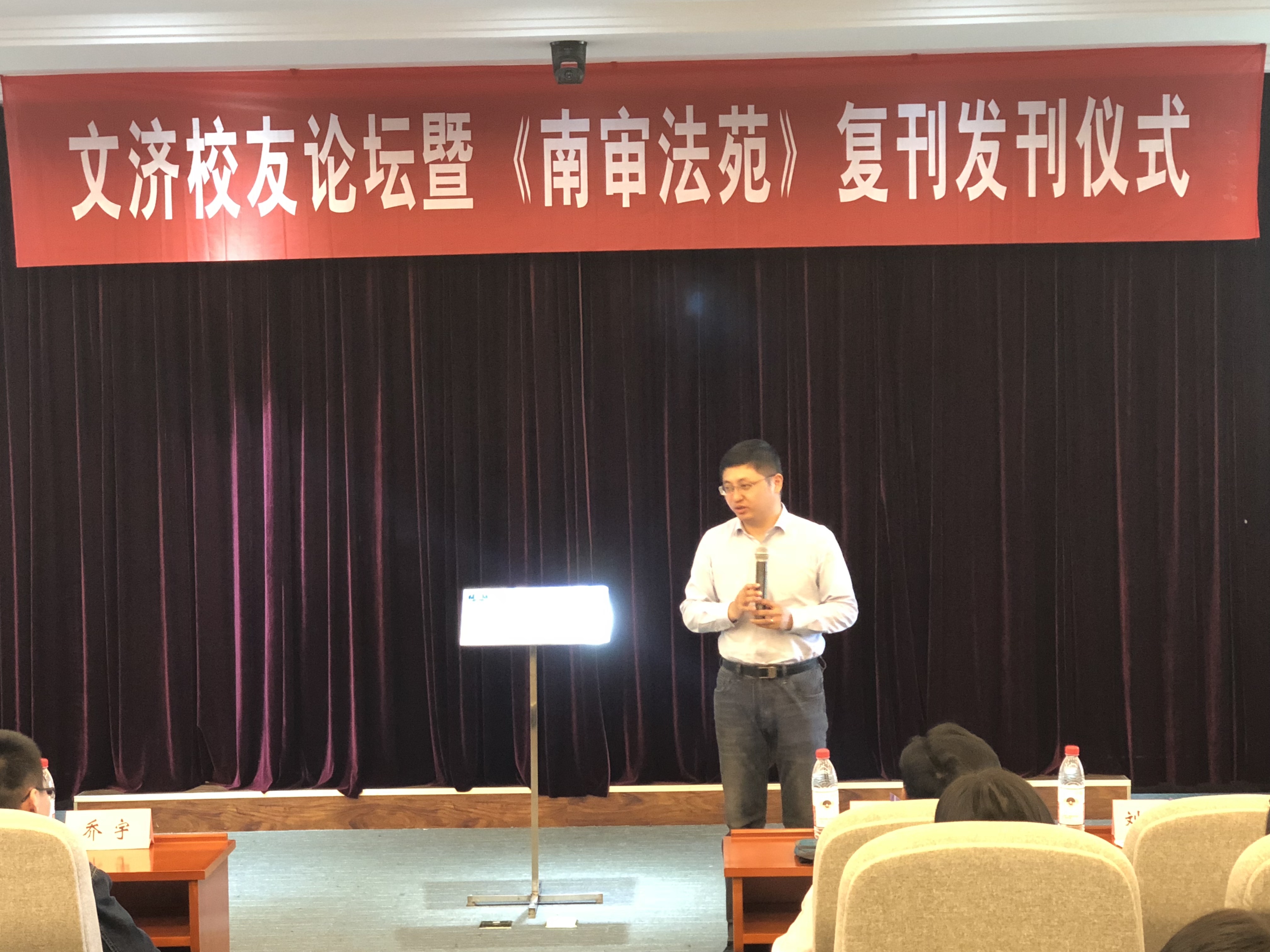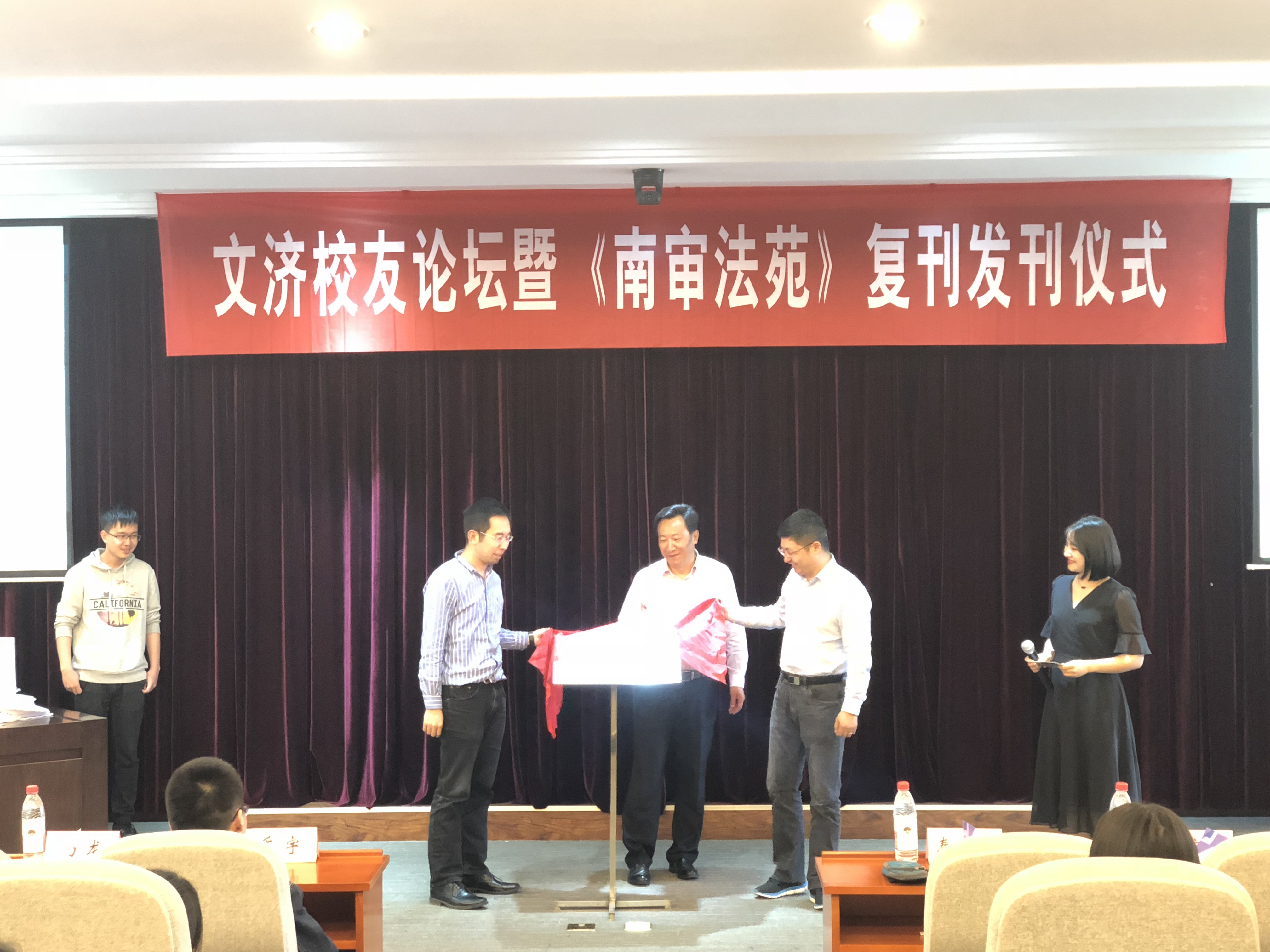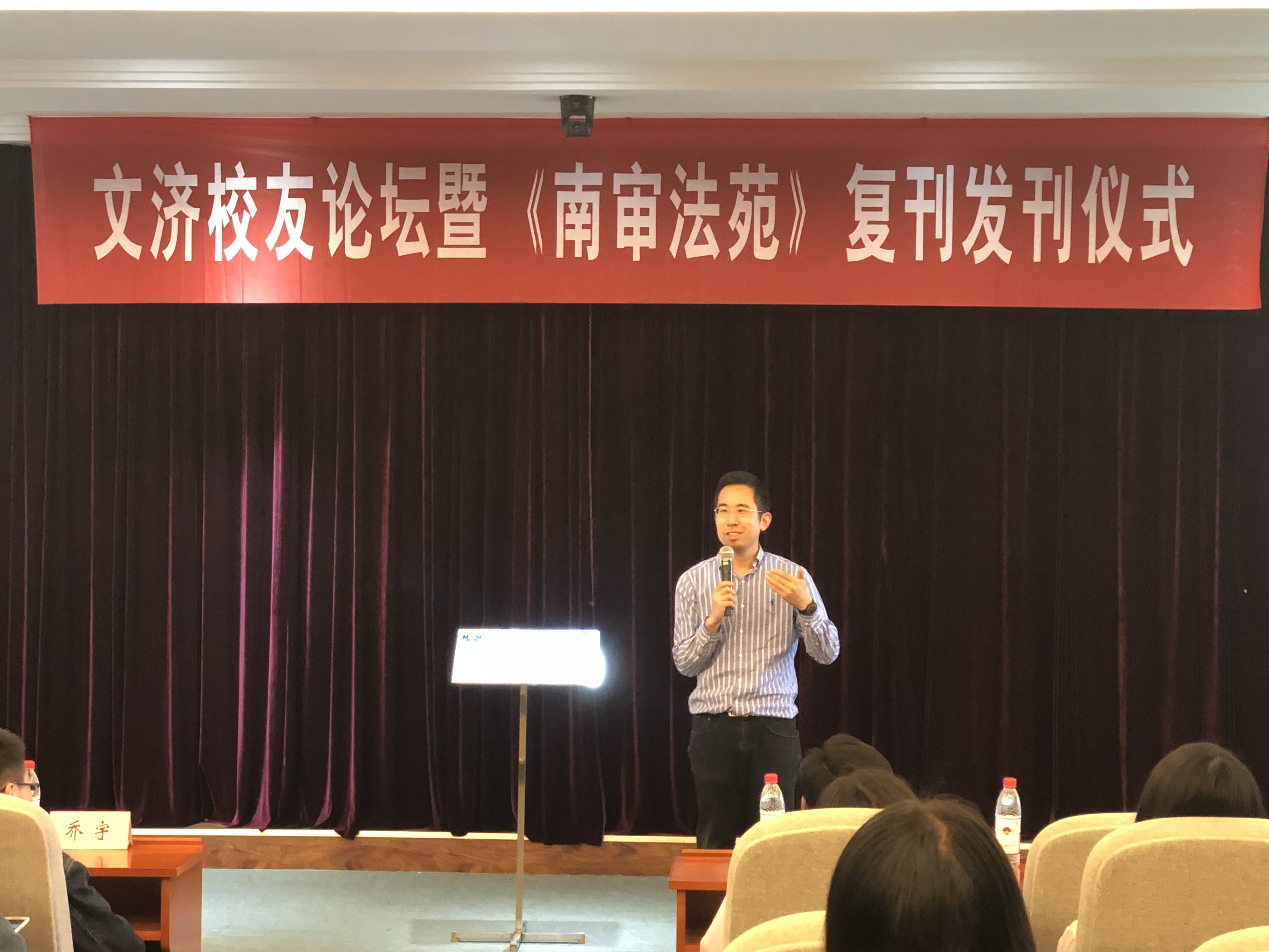 为充分发挥无码直播 优秀校友的模范带头作用,继续打造良好的校园法学文化,今年4月25日下午,第五期文济校友论坛暨《南审法苑》复刊发刊仪式于文心楼模拟教学法庭成功举办。受邀出席本次活动的嘉宾有:无码直播 老师、博士生导师秦国荣教授,学务委员会副主任刘宏宇,无码直播 专业协会指导老师、青年博士殷楠,以及优秀毕业生代表乔宇、马龙、夏亦冬和杨柳等,逾130余名无码直播 学生也参加了本次活动。