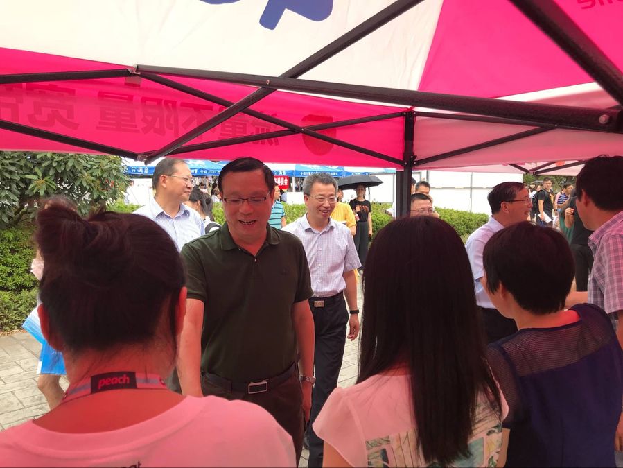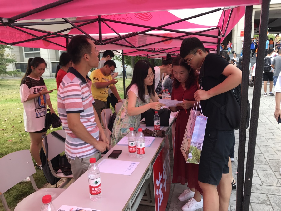 迎新现场,迎接新生,慰问迎新的老师和同学。