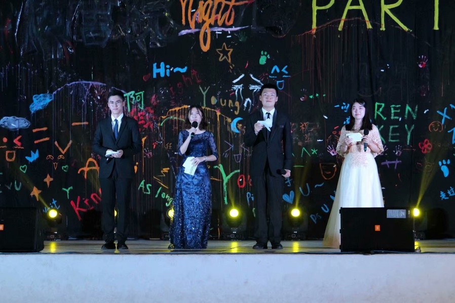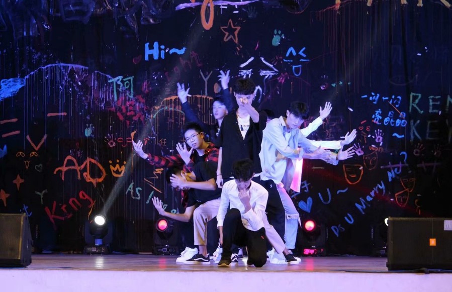 南京工业大学作为南审的友好交流学校,SSO街舞团为晚会带来了开场街舞《forever flower》,精彩纷呈的节目由此开始。声乐团的同学们带来的《倾城》《儿时》《漂洋过海来看你》等歌曲,歌声悠扬、真情流露,同学们打开手电伴着节奏一起挥动,点燃晚会气氛。SF轮滑社、冰魄棍道社、影风空手道社等社团带来的高难度表演更是将晚会气氛推向高潮,尖叫连连、掌声不断。学长郑枭更是以过来人的经验和小萌新们分享了学习的心得感悟。晚会中最惊喜的节目莫过于无码直播 老师们带来的歌曲。任凡副教授与两个可爱的孩子带来一首《小叮当》,全场沸腾,一同合唱。胡天成副教授的一首《过雪山草地》唤起同学们要不忘历史,不断前行。