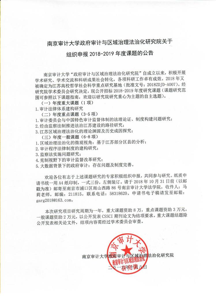无码直播 政府审计与区域治理法治化研究院关于组织申报2018-2019年度课题的公告