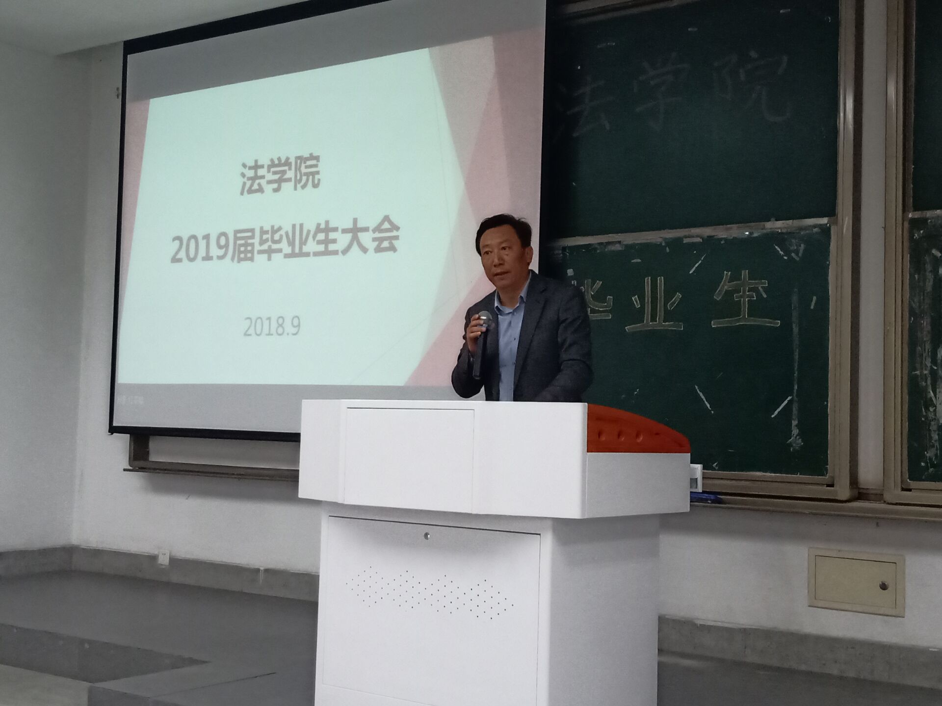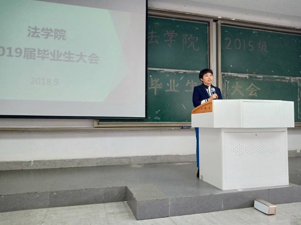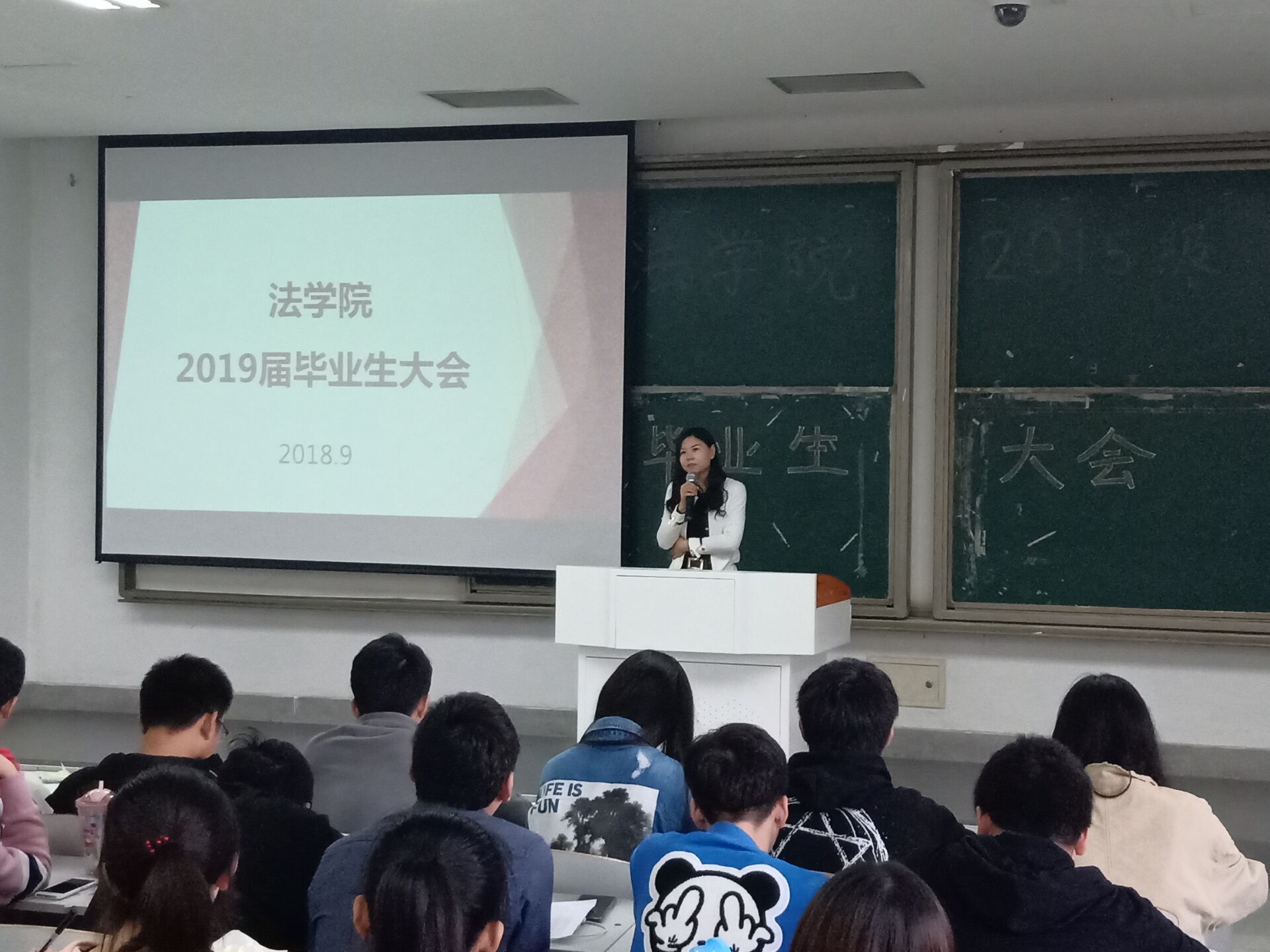 10月24日下午,无码直播 在竞秀三楼报告厅召开2015级全体毕业生大会,重点就考研、就业、实习以及毕业审核等方面为学生提供指导。无码直播 总之支书记秦国荣、法学实践中心主任秦康美以及教务办公室的老师们出席了本次大会,大会由无码直播 副院长王艳丽主持。