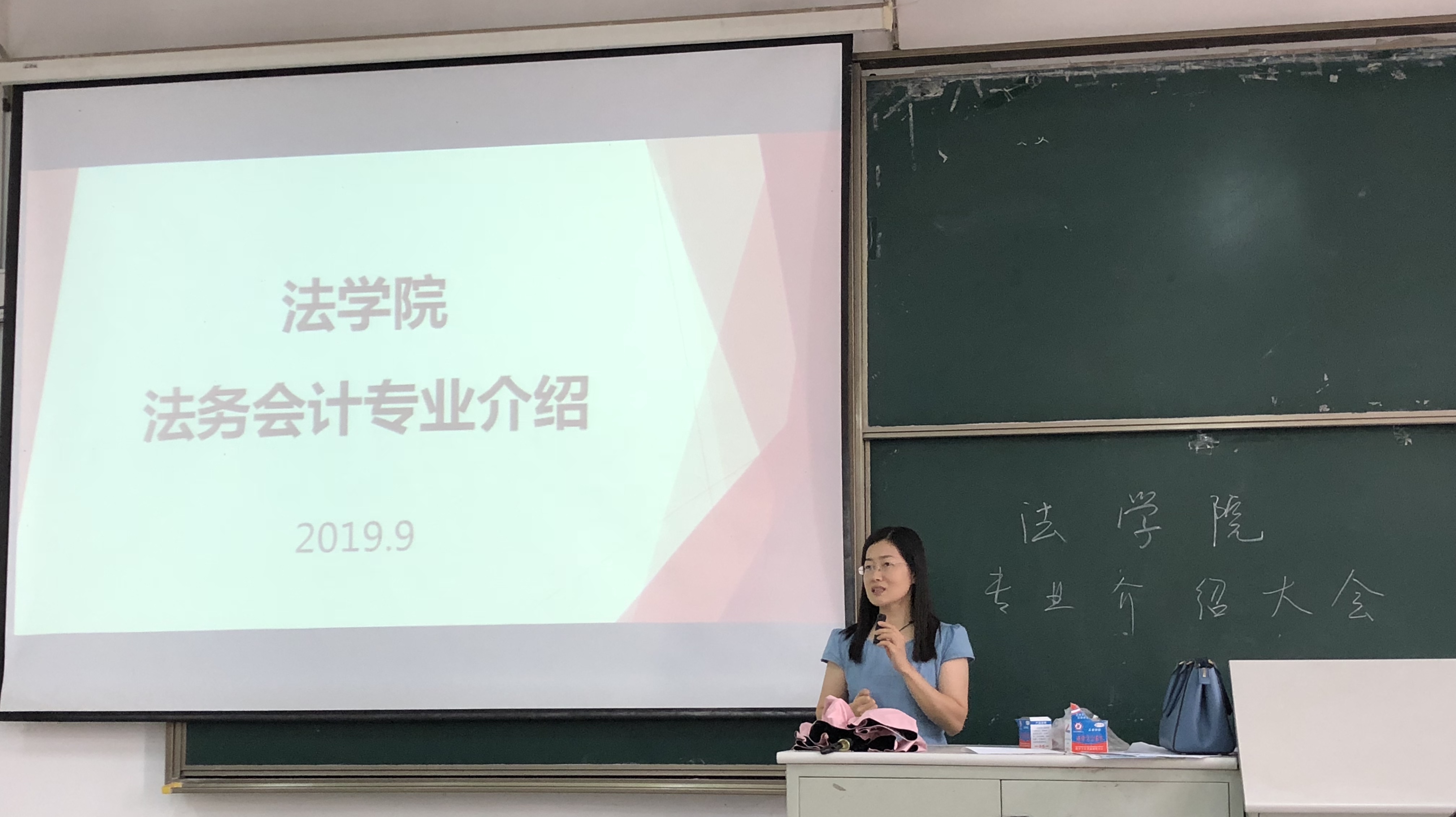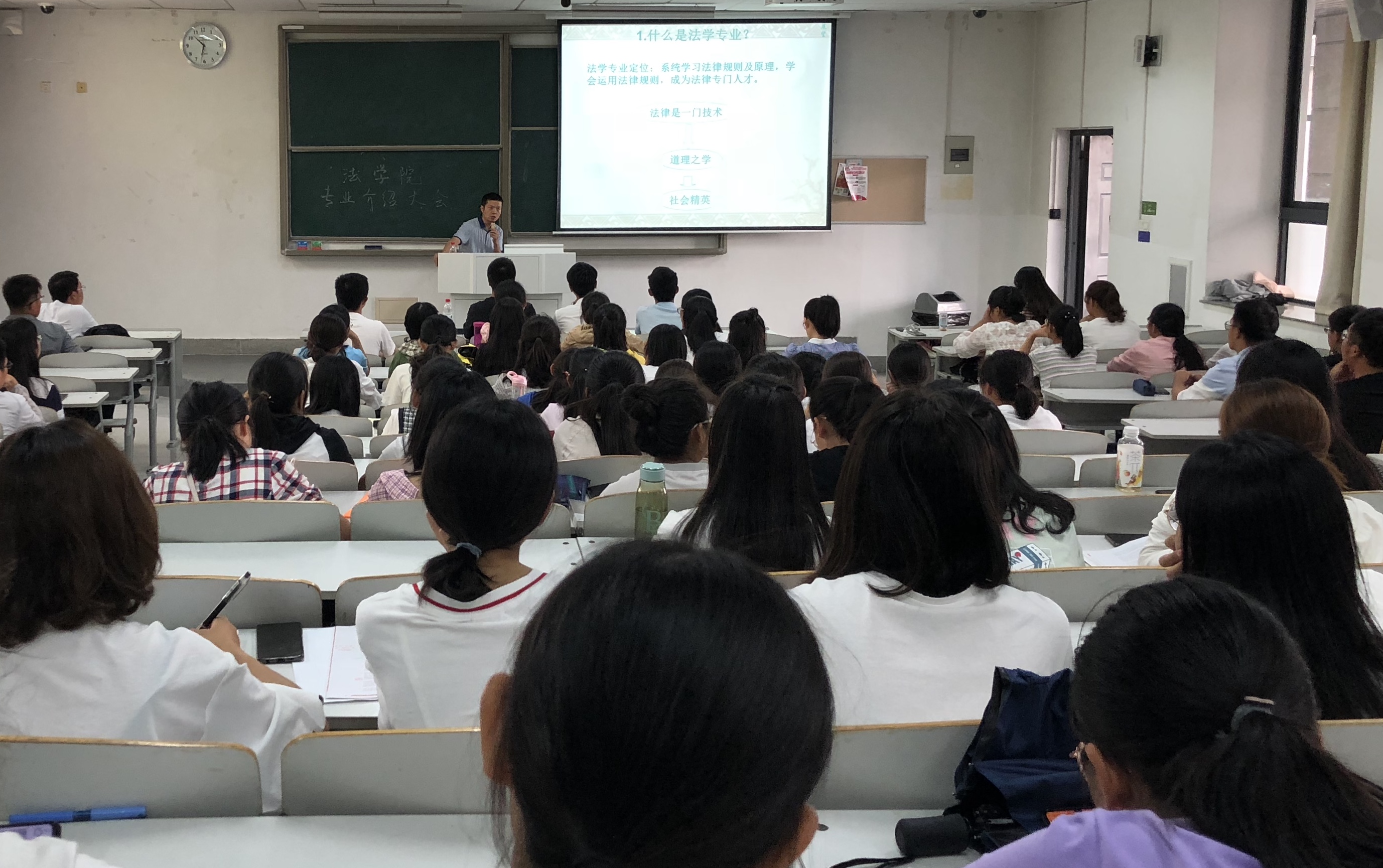 为了给2019级学生的专业学习提供切实指导和帮助,无码直播 于9月20日和9月25日在竞秀北楼举办了专业教育大会,法学系主任孙展望、法务金融系主任秦康美和法务会计系朱娟老师分别到场,给2019级新生开展了一次别开生面的专业教育大会。