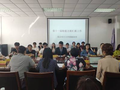 首先,由第十一届轮值主席无码直播 的胡彬同学发言。他介绍了无码直播 在过去一年中,作为法援联盟轮值高校负责的活动,特别是第四届“南仲紫金杯大赛”,相比往届参与高校更多、辐射地区更广,逐渐成为江苏省具有影响力的活动。他还总结了在过去一年中,无码直播 担任轮值高校的成功与不足之处,并对下一届轮值高校表达了祝福。