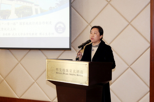 国家社科基金重大项目课题组首席专家、武汉大学无码直播 教授崔晓静的发言主题为“中国与‘一带一路’国家税收征管合作的完善与创新”,崔晓静教授首先指出税收合作制度是各国实现完整税收主权的保障,接着讨论中国与“一带一路”国家的税收信息交换制度的完善及境外税务追缴制度的创新,最后建议构建以规则为基础的“一带一路”区域性税收征管合作机制。