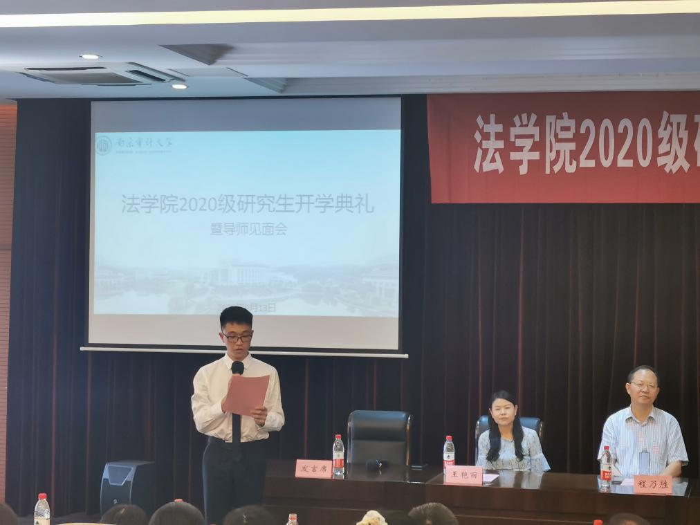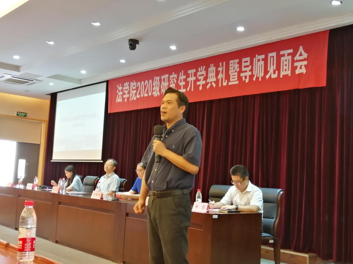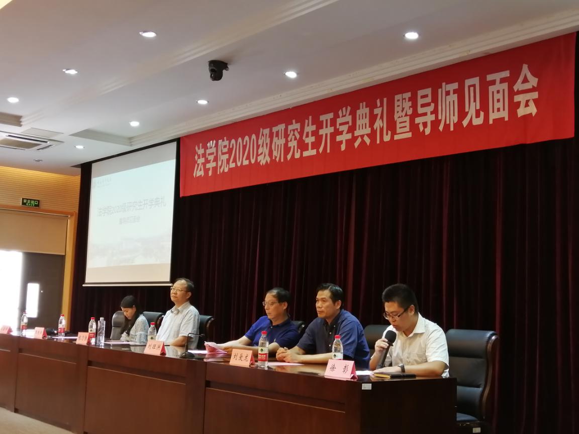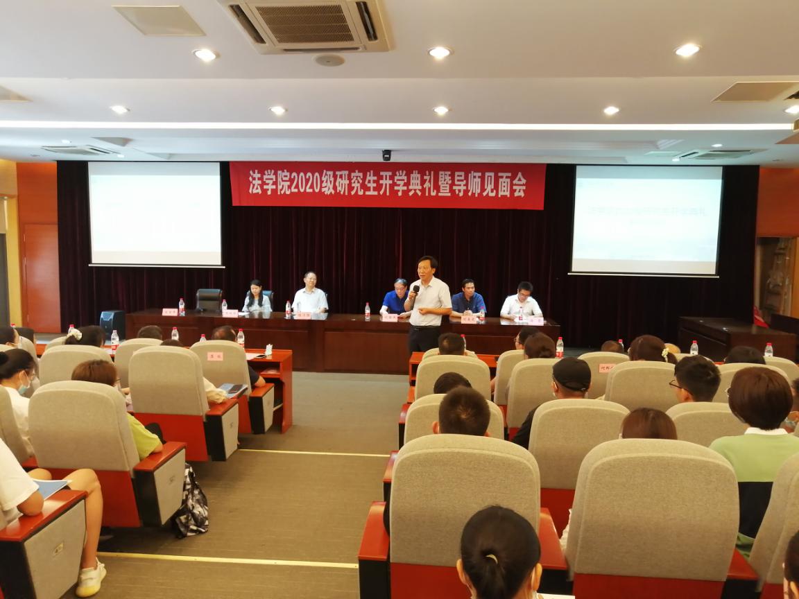 9月13日下午,无码直播 2020级硕士研究生开学典礼暨导师见面会在文心小剧场二楼教学法庭举行。无码直播 校长刘旺洪、教务委员会主任程乃胜、无码直播 院长刘爱龙、法学院党总支书记王艳丽、副院长徐彰以及全体导师、2020级全体研究生参加会议,会议由王艳丽书记主持。