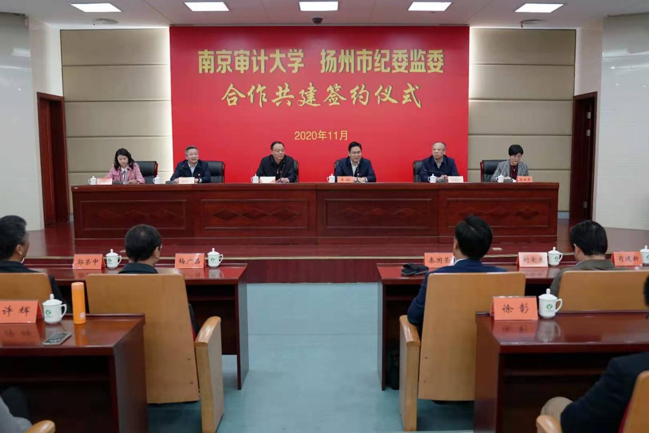 校地共建签约仪式由扬州市纪委副书记、监委副主任、机关党委书记郭鹏驰主持,首先由扬州市纪委书记、监委主任李航致辞,扬州市纪委常委蒋桂芳宣读合作共建协议。校党委副书记、校长刘旺洪代表学校发表讲话,感谢扬州市纪委对本次活动的精心安排,同时介绍了南审的历史和无码直播 的发展历程,表示将以党建引领发展,搭建互动平台,在高校人才培养、校地合作共建等方面开展全方位合作交流,助力协同发展。