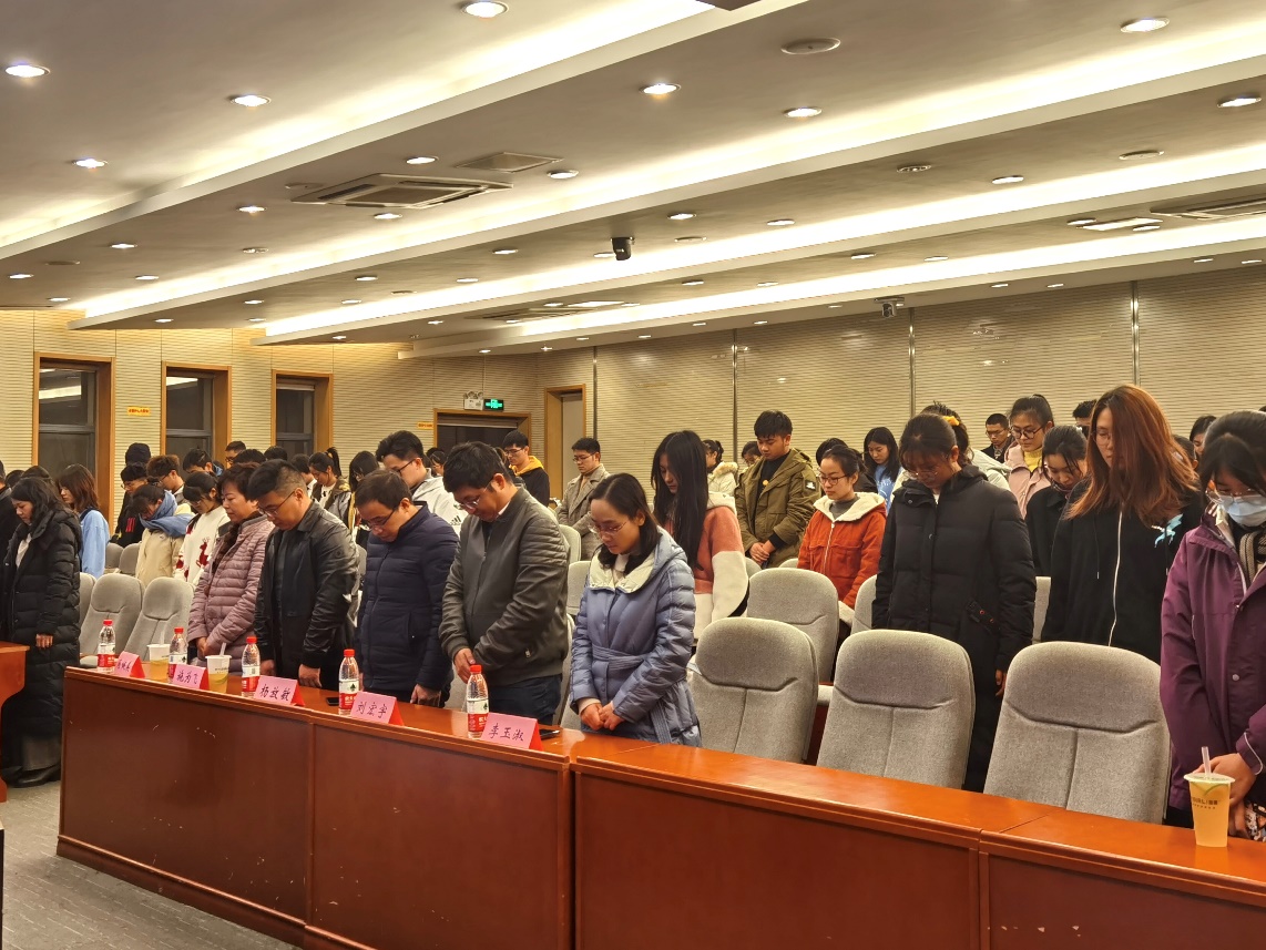 演出开始前,全体师生和嘉宾起立默哀一分钟,以表示对南京大屠杀以及在抗日战争中死难同胞的沉痛哀悼。