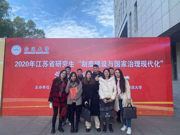 2020年11月27日至29日,江苏省研究生“制度建设与国家治理现代化”学术创新论坛在南通召开。本次会议由省哲法史类研究教育指导委员会主办,南通大学承办。来自南京大学、东南大学、南京航空航天大学、南京师范大学、南京农业大学、苏州大学等14所高校的10余名专家学者、80余名研究生参会研讨。我院10名硕士研究生应邀参加。