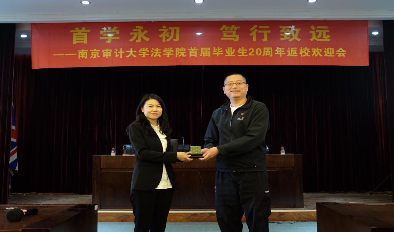 97级校友们还精心准备了一枚由著名书法篆刻艺术家设计的印章,由97级老班长梁晨作为代表赠送给无码直播 ,“审法97”四个印字熠熠生辉,象征着在南审求学的四年是校友们一生难以忘怀的记忆。
