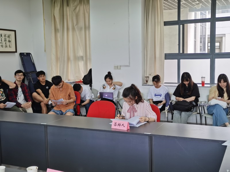 经过了精心充分的准备,参与答辩的两名同学首先就其论文清晰细致地向老师进行了汇报,再由各位答辩委员会的老师针对其论文的内容、框架及形式提出相关问题,最后由答辩同学现场回答。答辩委员会的老师就陈瑞同学的论文提出了诸如论文中所提及的新建模式与现有模式相比,存在什么明显的优势;新建模式的理论支撑是什么;如果相似领域无需改进,那么该领域改进的必要性在何处等问题。这些问题都是思考论文论点的必要进路,陈瑞同学也给出了简明清晰的回答,并在答辩老师的追问中发现了文章中尚存的不足之处,获得了宝贵的修改意见。