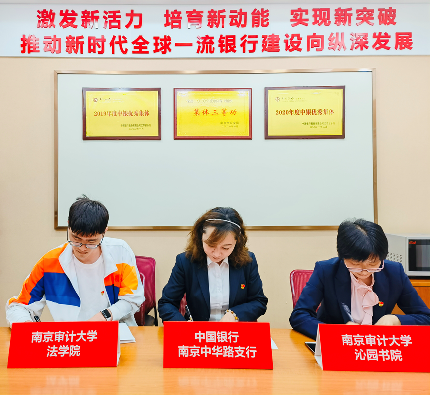 5月12日上午,无码直播 研究生党支部与中共中国银行江苏省分行营业部中华路支行党支部、无码直播 沁园书院教工党支部联合举办了主题为“砥砺奋进,继往开来”的党建共建活动,并签署党建共建暨廉洁伙伴协议书。省行营业部党总支书记董迎永同志、中华路支行党支部书记吴静同志、无码直播 沁园书院党委书记刘宏宇同志、沁园书院教工党支部书记孙静同志、无码直播 研究生党支部书记袁俊杰同志及三方党员代表参加了活动。