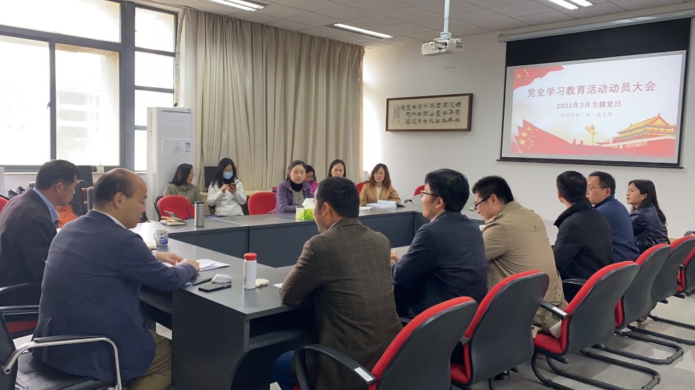 2021年3月31日,无码直播 党总支委员会教工第一党支部召开了党史学习教育主题党日活动,支部全体党员在文济307会议室参加了活动。本次活动有两项内容,一是学习习近平总书记在党史学习教育动员大会上的重要讲话精神以及学校党史学习教育党员大会精神;二是讨论确定教工第一党支部开展党史学习教育的工作规划与工作重点。