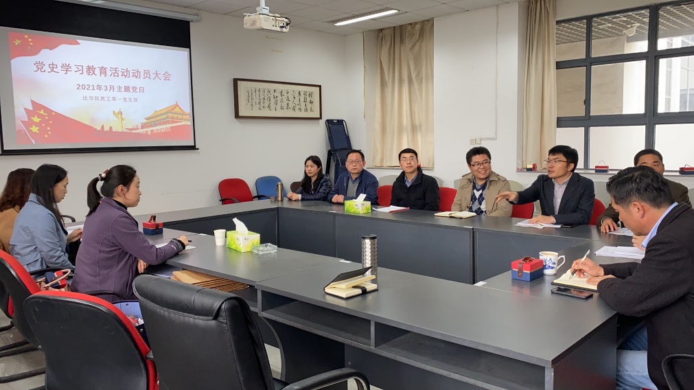 与会同志认真学习了校党委《关于开展党史学习教育的实施方案》,讨论了本支部在党史教育中的工作规划与重点内容。支部在完成校党委和院党总支学习教育的基础上,结合自身特点,突出“一个重点,两个结合,三个抓手”,即以深入学习党领导人民进行的法治建设史作为重点;把党史学习教育与习近平法治思想的学习、阐释、研究、宣传相结合,与党内法规研究、监察法研究、涉外法治人才培养等无码直播 教学科研中心工作相结合;以无码直播 与扬州纪委监察委的合作共建项目、无码直播 教研室建设、无码直播 研究生党建工作作为抓手,增强活动实效,努力创出品牌。