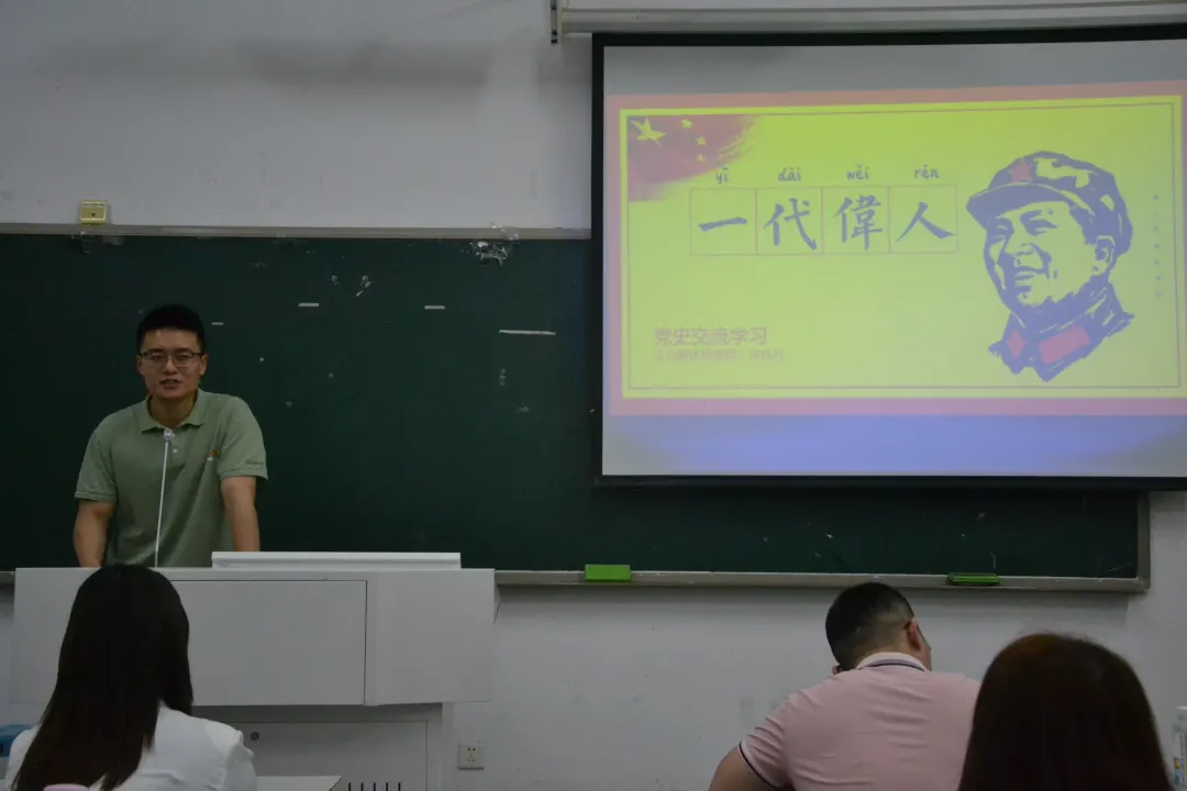 第一阶段由检察干警申伟凡分享党史学习心得,他从中华人民共和国成立的时间点切入,分析了毛泽东主席革命生涯中的几个重要事件,对比了部分最初和他一同参加革命但中途退出者的不同境遇,他提出:因为毛主席始终坚持 “全心全意为人民服务”的理念,矢志不渝,才最终成为新中国的缔造者,而那些革命意志不坚定,为了一己之私牺牲国家利益的叛党者,最终只能被历史所唾弃。“践行初心使命”是此次分享的关键词,申伟凡同志鼓励同学们不忘初心使命,始终以做一个对社会有贡献的人为己任,坚定意志、提升贡献度。