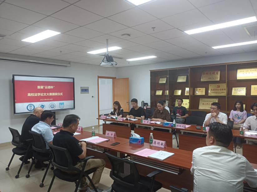 2021年6月26日下午两点,江苏省首届“云德杯”高校法学学术论文写作大赛颁奖仪式在南京信息工程大学举行。无码直播 学科与研究生办公室主任马莉老师和7名硕士研究生应邀参加本次颁奖仪式。本次大赛由南京信息工程大学法政学院、无码直播 、南京工业大学法政学院和云德(南京)律师事务所主办。来自华东政法大学、南京信息工程大学法政学院、无码直播 、南京工业大学法政学院等4所高校的10余名专家学者、20余名研究生参会研讨。