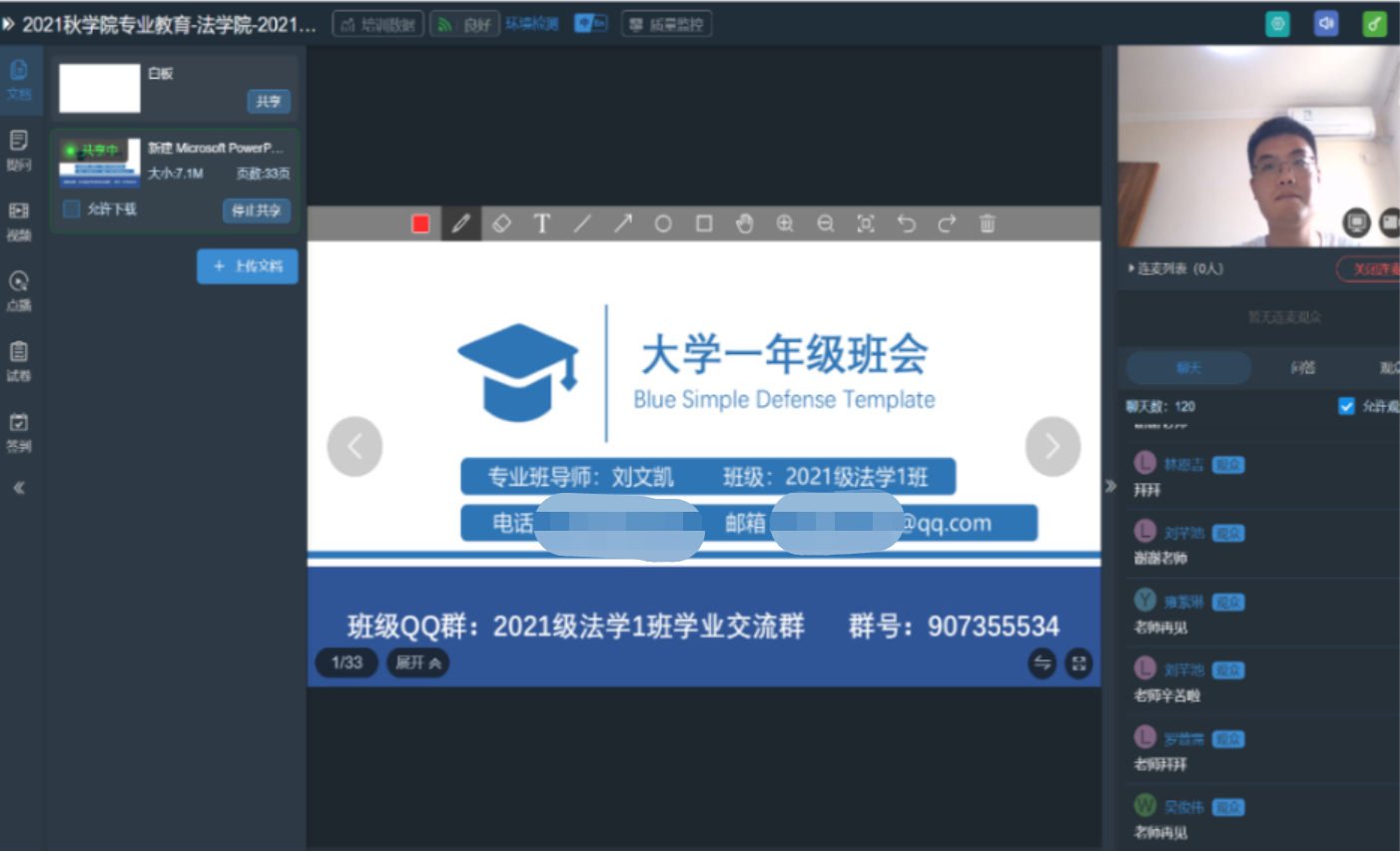 无码直播 2021级新生入学教育:专业班导师的“云班会”