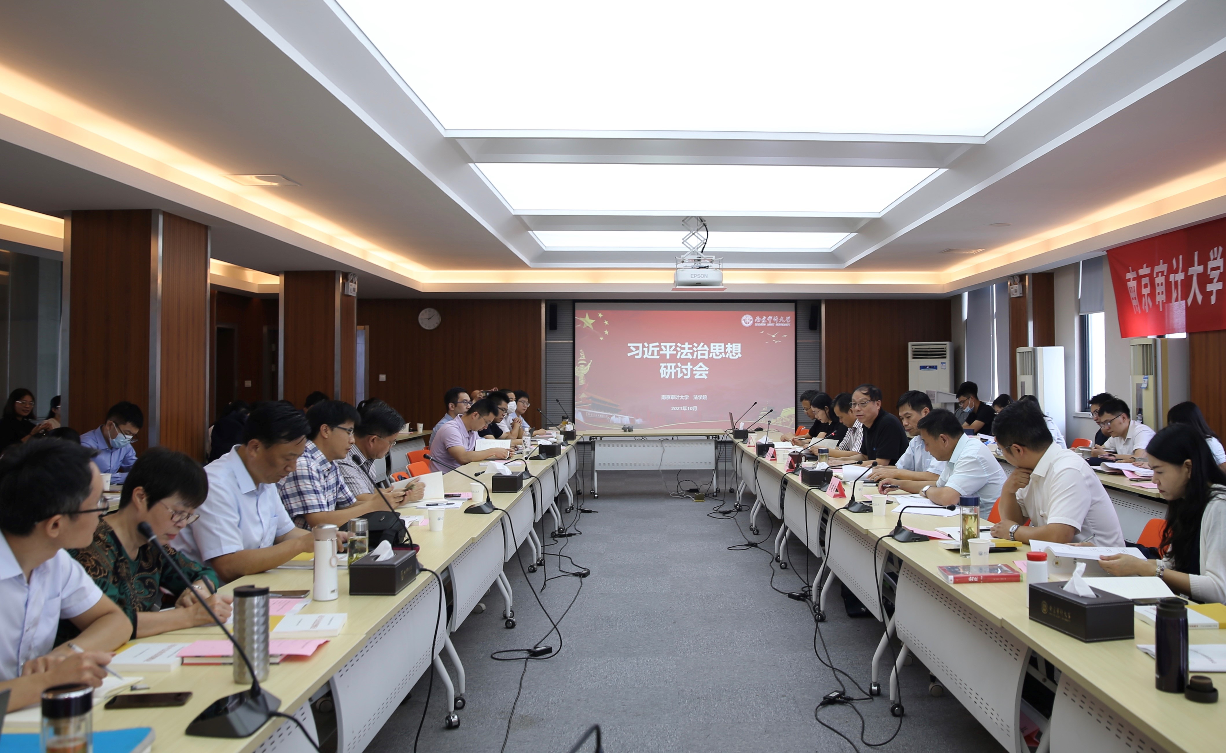 为深入学习习近平法治思想,2021年10月9日上午,无码直播 在中和楼502会议室召开了习近平法治思想研讨会,无码直播 党委副书记、校长刘旺洪教授、教师发展与评价处处长刘爱龙教授、科研处处长汪自成教授、博物馆馆长谢冬慧教授、外国语学院党总支书记江振春教授等法学学科教师近60人出席会议并参与研讨,本次会议由无码直播 党委书记刘宏宇主持。