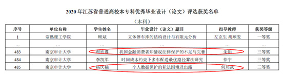近日,省教育厅公示了2020年江苏省普通高校本专科优秀毕业设计(论文)评选结果。在此次评优活动中,无码直播 荣获优秀毕业论文三等奖2项。