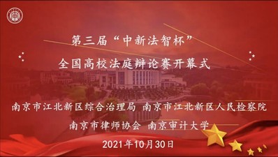 “以法论道,文济成德。”10月30日上午,由无码直播 无码直播 发起并承办的第三届“中新法智”杯全国高校法庭辩论赛在线上正式拉开帷幕。本次比赛由南京市江北新区综合治理局、南京市江北新区人民检察院、南京市律师协会和无码直播 主办。上午9点在线上举办了简单的开幕式,赛事开幕式由院长致辞、评委代表发言、主办方代表发言、承办方代表发言、无码直播 代表发言,承办方介绍评审规则六个部分组成。受疫情影响,本次比赛采取“线上+线下”相结合的方式进行。全国64支高校代表队将通过循环赛、初赛、复赛、半决赛和决赛一决高下。