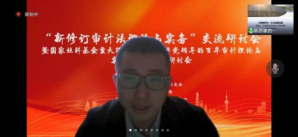 为进一步加强审计法理论研究,推动新修订审计法顺利实施, 4月16日,江苏省法学会审计法学研究会,无码直播 、国家审计研究院审计法治研究中心、政府审计与区域治理法治化研究院联合召开“新修订审计法理论与实务”交流研讨会暨国家社科基金重大项目“中国共产党领导的百年审计理论与实践研究”专题研讨会。根据疫情防控要求,本次研讨会采取线上形式召开。来自理论界和实务界的专家以及无码直播 研究生共70余人参加。
