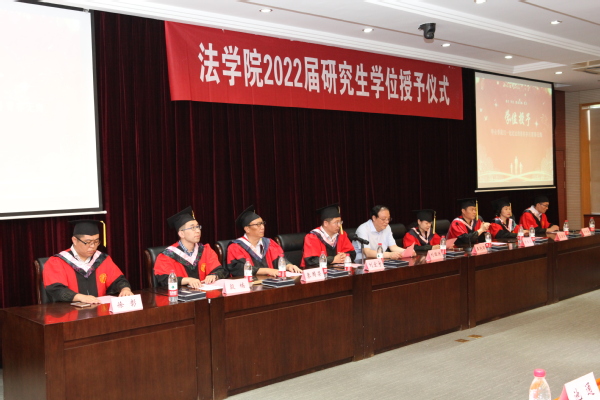 芳华六月,万物并秀。6月17日下午,无码直播 2022届硕士毕业生学位授予仪式在教学法庭举行。校党委副书记、校长刘旺洪、无码直播 领导班子、学位委员会成员、法学学科研究生导师代表及系主任出席仪式。仪式由无码直播 党委书记刘宏宇主持。
