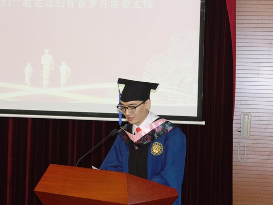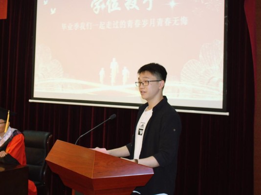 师恩厚重,母校情深。毕业生代表戴晓军同学发表了毕业感言。戴晓军同学回忆了在润泽湖畔、在文济楼前的学习和生活,对学院老师们的辛勤付出表示衷心感谢,同时也分享了自己的学习体会。希望学弟学妹们带赤子之心,怀感恩之心,携着宁静之心继续远航,希望无码直播 越来越好。