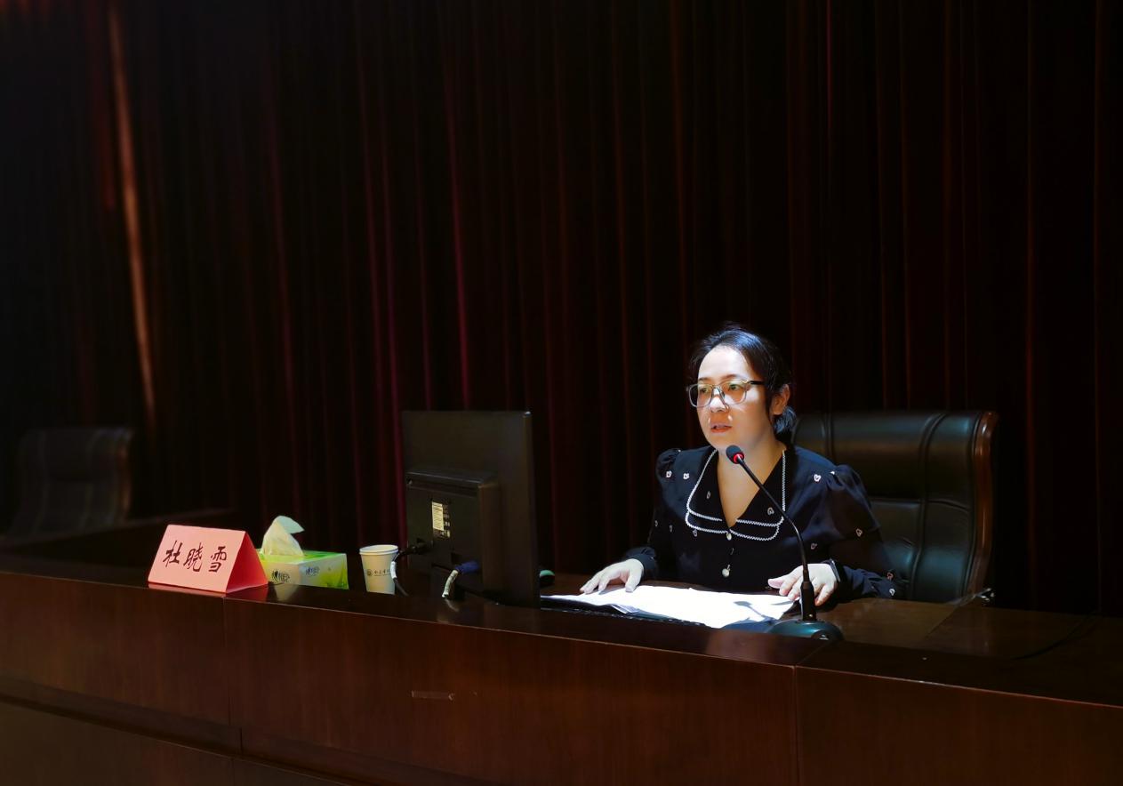 杜晓雪科长负责司法宣传工作,在台上她事无巨细地跟在座师生分享了浦口区司法局与南审无码直播 合作的点点滴滴,再述双方取得的煌煌功绩,当下正值“八五”普法工作进行时,杜科长号召在场学子投入其中,努力学习和宣传“习近平新时代中国特色社会主义法治思想”,为建成现代化法治社会的千秋大业添砖加瓦。