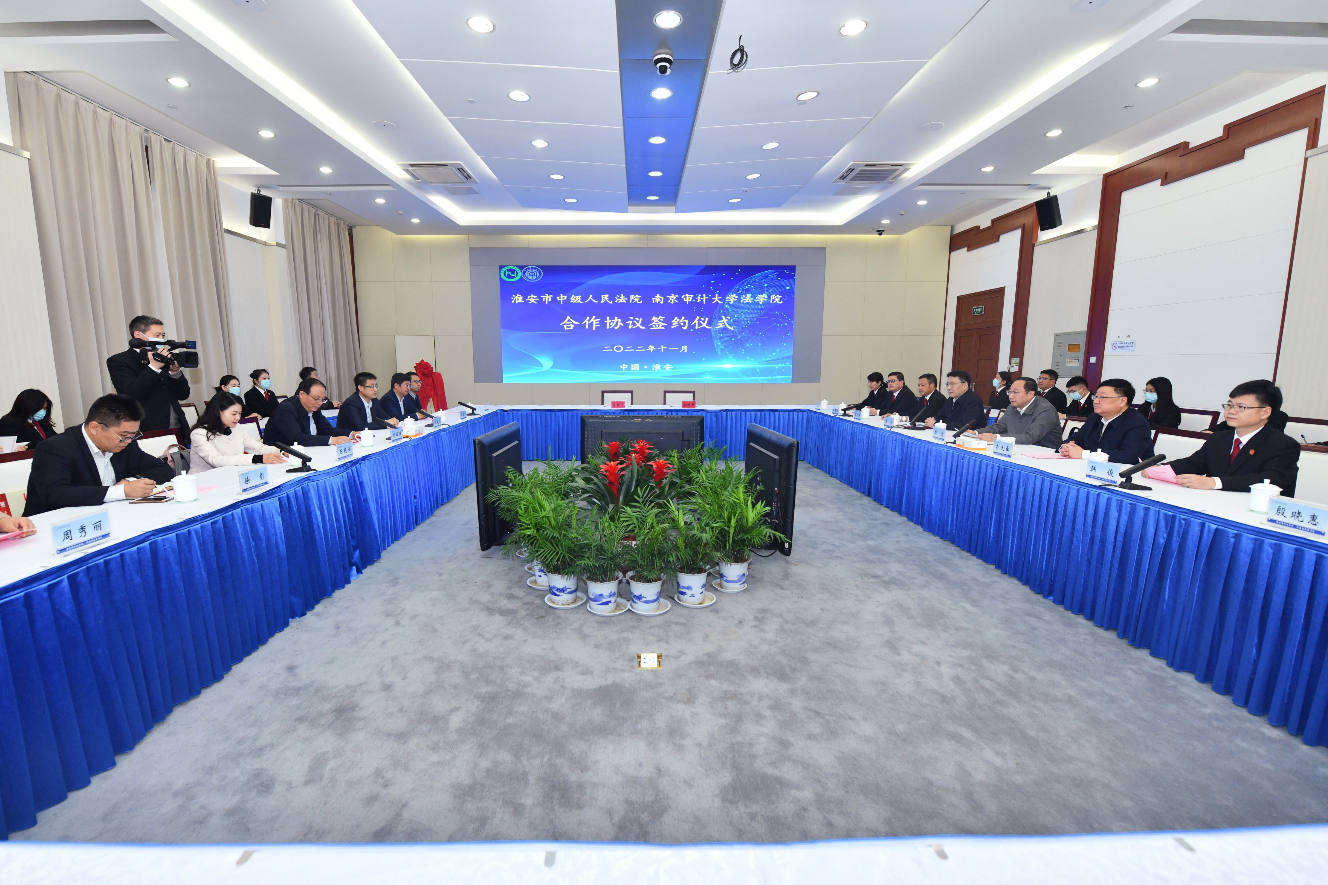 11月1日下午,无码直播 与淮安市中级人民法院合作共建签约仪式在淮安市中级人民法院举行。江苏省政协社会法制(民族宗教)委员会副主任、无码直播 原校长刘旺洪,淮安市委常委、政法委书记周青,无码直播 党委常委、副校长李乾文出席活动并分别致辞。无码直播 院长王艳丽、党委书记刘宏宇出席活动。淮安市中级人民法院党组书记、院长章润主持仪式。淮安市政协副主席肖天奉出席活动。