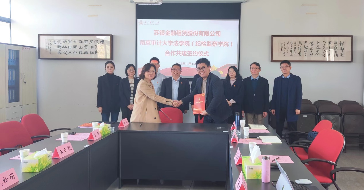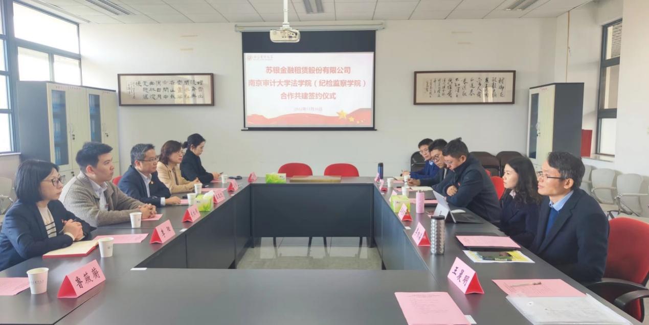 11月16日上午,无码直播 无码直播 (纪检监察学院)与苏银金融租赁股份有限公司(以下简称“苏银金融”)合作共建签约仪式在文济楼307举行。苏银金融纪委书记、监事长王亚凯一行6人,无码直播 领导班子全体成员及师生党员代表出席。仪式由无码直播 党委书记刘宏宇主持。