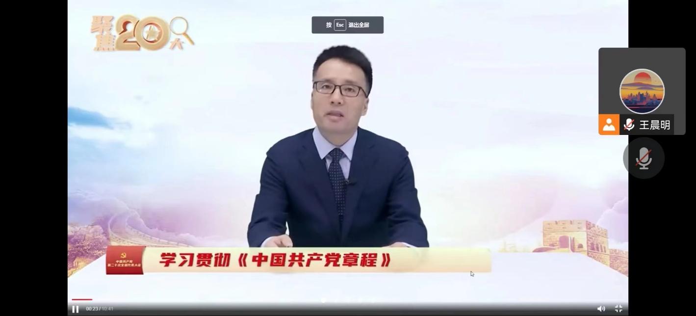 此外,为让各位党员同志充分熟悉本次党章的修订部分,王晨明同志带领大家观看了中共中央党校曹鹏飞教授关于党章新修部分的解读视频。