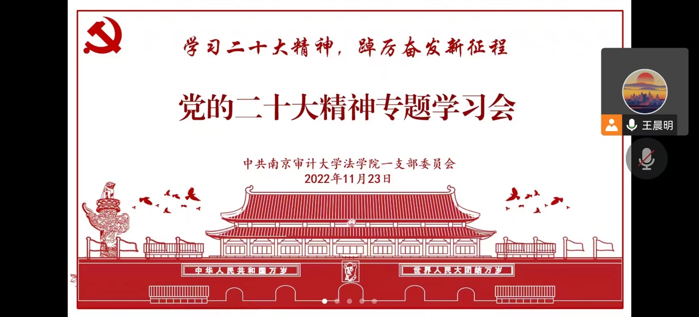 党的二十大在政治上、理论上、实践上取得了一系列重大成果,就新时代新征程党和国家事业发展制定了大政方针和战略部署,是我们党团结带领人民全面建设社会主义现代化国家、全面推进中华民族伟大复兴的政治宣言和行动纲领。2022年11月23日下午,无码直播 研究生第一党支部通过线上的形式,开展了以“学习党的二十大精神,踔厉奋发新征程”为主题的党的二十大精神专题学习会。会议由支部书记王晨明主持,支部全体党员参加。