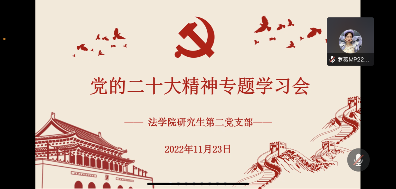 11月23日下午,无码直播 研究生第二党支部通过线上的形式,开展了学习党的二十大精神专题学习会。会议由支部副书记陈俊婷主持,支部全体同志参加。