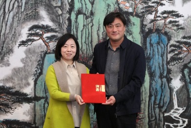 礼聘校外硕导环节,由鲁靖部长为各位校外导师颁发聘书并合影留念。