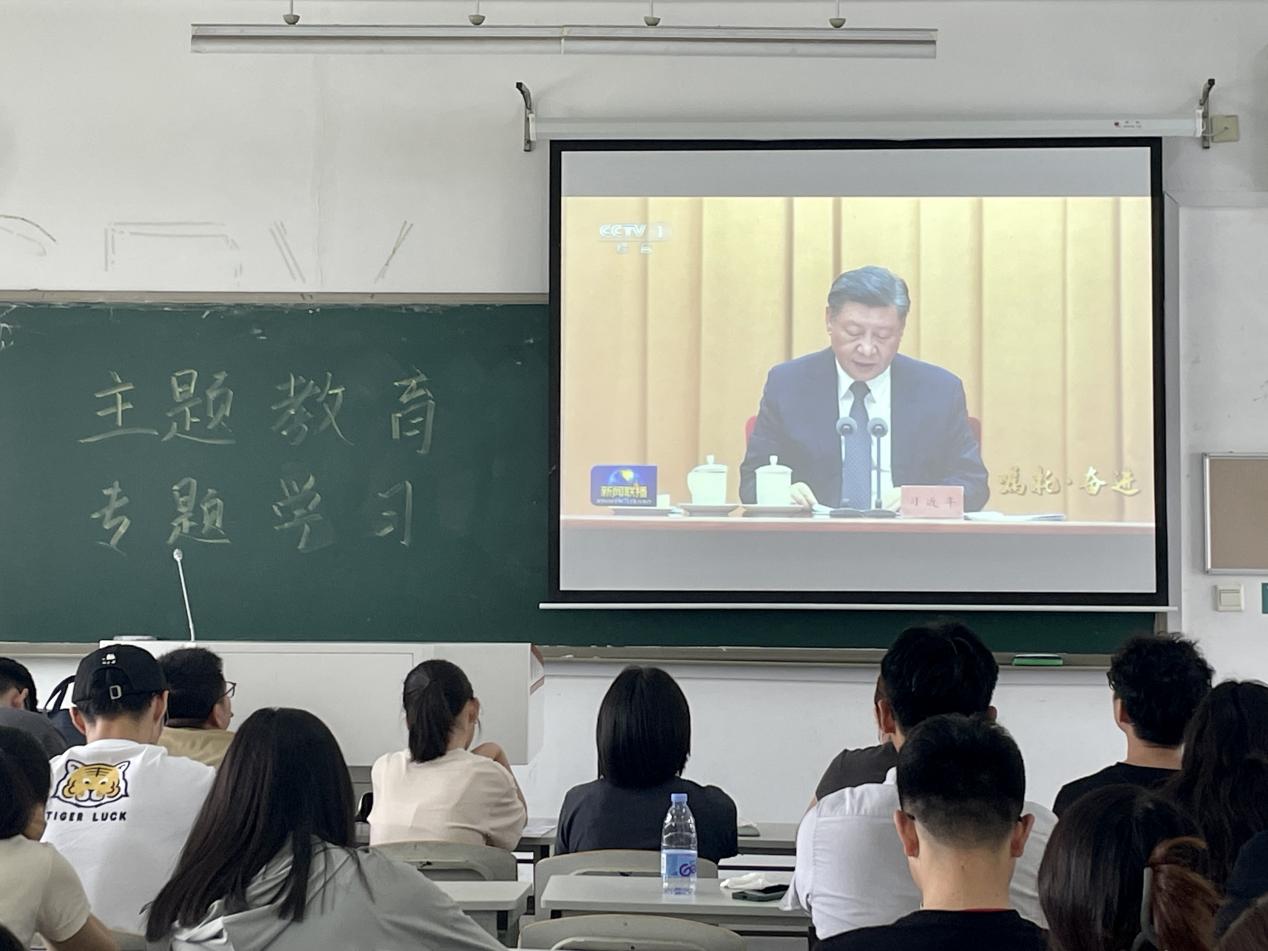 为深入开展学习贯彻习近平新时代中国特色社会主义思想主题教育,6月17日上午,无码直播 党委研究生第一、第二党支部全体党员于文济楼306集中观看主题教育专题片,开展“牢记嘱托、感恩奋进、走在前列”大讨论。