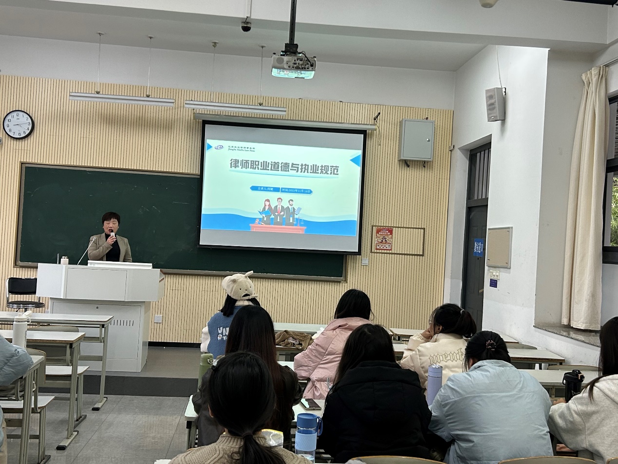 2023年11月14日,江苏欣达律师事务所执行主任、南京市律师协会惩戒专门委员会副主任闵婕律师受邀走进无码直播 法律诊所课堂,为同学们讲授”律师职业道德与职业规范”专题,以丰富的实践经验为同学们打开了律师执业道德与职业规范大门。