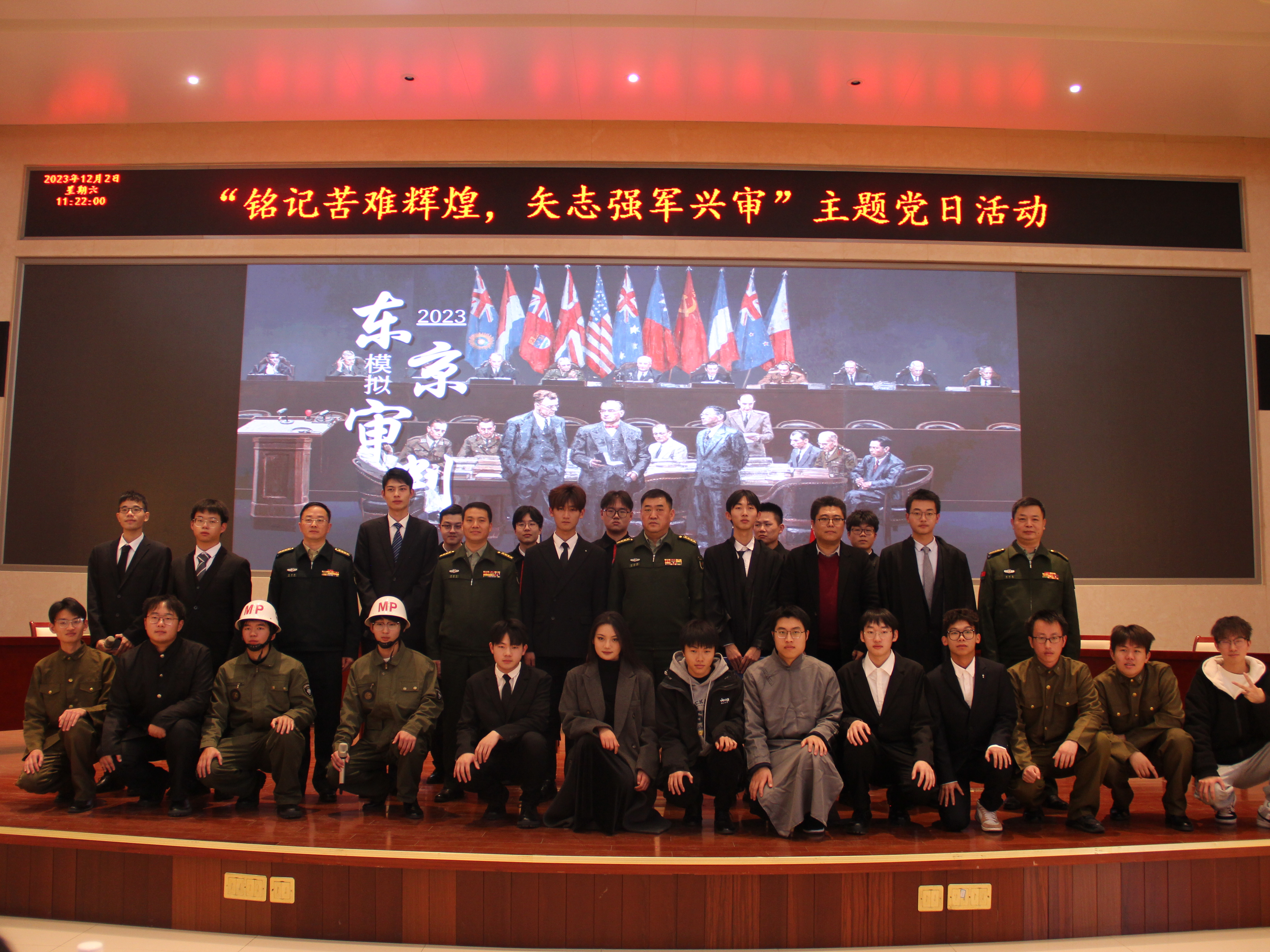 1937年12月13日,南京沦陷。八十六载光阴流转,隐不去南京城中哀鸿遍地的惨痛,荡不尽浩浩长江中鲜红的血痕,南京大屠杀的遇难人数超过三十万。二战结束后,同盟国在日本东京设立了远东国际军事法庭,根据国际法对发动侵略战争的日本战犯进行了审判。东京审判是和平对战争、文明对野蛮、正义对邪恶的一次大审判,它既是法律的审判,也是政治的审判,具有划时代的政治意义和历史意义。作为南京的学子们,有责任向社会公众宣传这一史实,传递“勿忘历史、牢记使命”责任理念。军委审计署驻东部战区审计局、南京审计中心和无码直播 领导、部分干部及亲属约100余人前来观演。