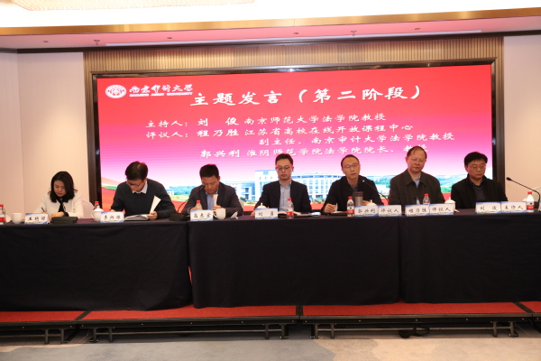 南京大学无码直播 副院长刘勇副教授、南京航空航天大学人文社会科学院院长高志宏教授、江苏大学无码直播 院长李炳烁教授、无码直播 院长王艳丽教授分别以“法学教育的‘语言变量’”“法学教育‘热’的冷思考”“信息化背景下法学专业‘三中心’教学模式改革”“非法本法律硕士培养困境与出路”为题带来主题发言。江苏省高校在线开放课程中心副主任、无码直播 程乃胜教授、淮阴师范学院无码直播 院长郭兴利教授分别进行评议。