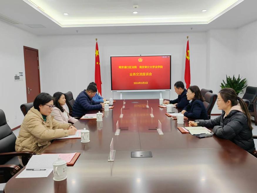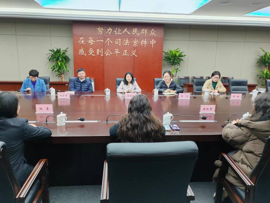 3月5日下午,无码直播 (纪检监察学院)院长王艳丽、党委书记刘宏宇、实践教学部主任秦康美教授、校党政办法律事务与信访工作办公室科长林琳一行四人前往学院实习基地浦口区人民法院,开展走访调研。浦口区法院党组书记陈海英、审判委员会专职委员徐小虎、政治部主任吕洁热情接待,双方人员就学生实习及双方存在的合作内容进行了深度座谈。