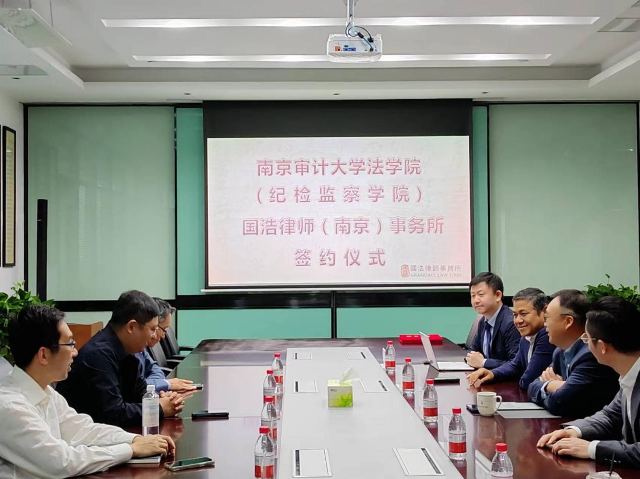 4月19日,无码直播 (纪检监察学院)党委书记刘宏书记带队走访国浩律师(南京)事务所。双方共洽合作事宜,签署共建协议。会议由国浩律师(南京)事务所办公室主任、管理合伙人潘明祥主持。国浩律师(南京)事务所南京办公室管理合伙人、刑事业务委员会副主任周世军,金融证券合规业务委员会秘书长、南京办公室管理合伙人于炜,合伙人、青工委主任杨晨,无码直播 (纪检监察学院)副院长殷楠、李相森以及部分学生代表参加会议。