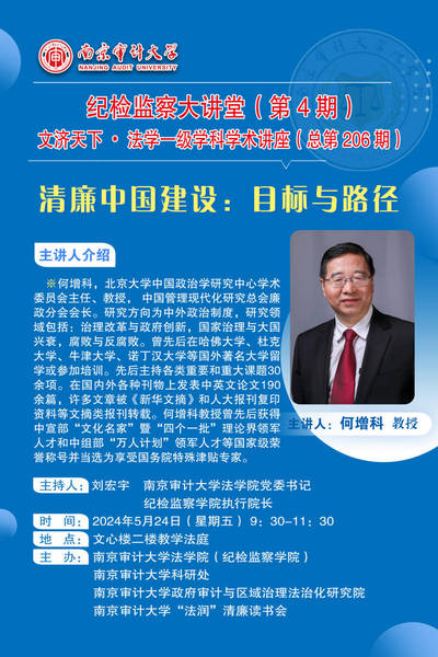 纪检监察大讲堂(第4期) 文济天下•法学一级学科学术讲座 (总第206期)