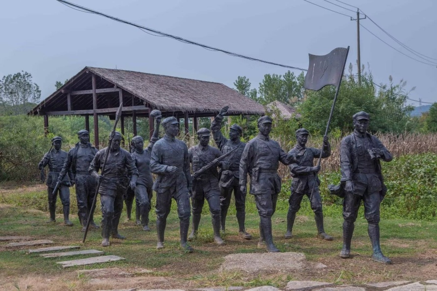 刚进入村口,迎面而来的是花丛环绕的“永远的初心”,后面矗立着“红色李巷”纪念碑,以及抗战先辈的工作战斗群雕,展示了新四军打游击时“幕天席地”的气概。教职工们参观了中国新四军历史研究馆,馆内一组组对照鲜明的数字、一张张破损泛黄的照片,无不向我们展示着这支铁军“不怕困难、不畏艰险,敢于斗争、敢于胜利”的革命精神。